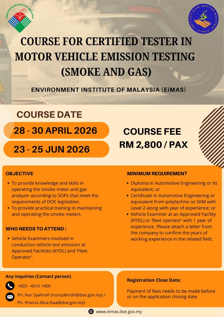 Kursus Pensijilan Penguji Ujian Pelepasan Asap dan Gas Kenderaan Bermotor
